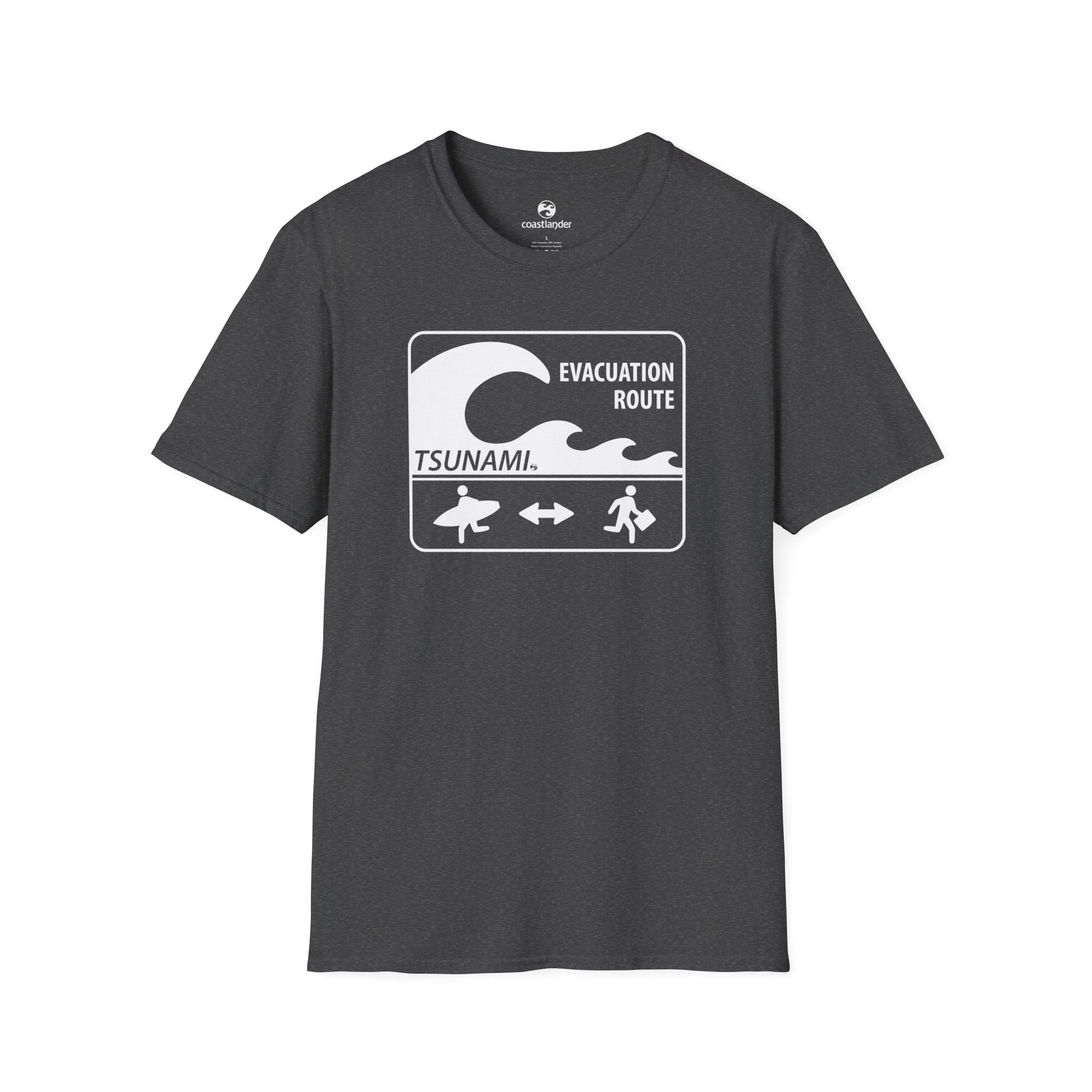 Coastlander's Tsunami Surfing T-Shirt is a unisex soft-style tee designed to test surfers' spelling and core survival instincts (do not attempt). Made using ethically grown and harvested US cotton, this funny surf tshirt offers twill tape shoulders and a rib knitted collar for both comfort and durability.